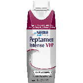 Peptamen® Intense VHP is a peptide-based nutritionally complete very high protein formula (37%) with peptides from 100% whey protein, 50% of fat from MCT with added EPA and DHA and lower carbohydrate content; designed to support improved formula tolerance and successful enteral feeding in patients with impaired GI function and/or high protein requirements.